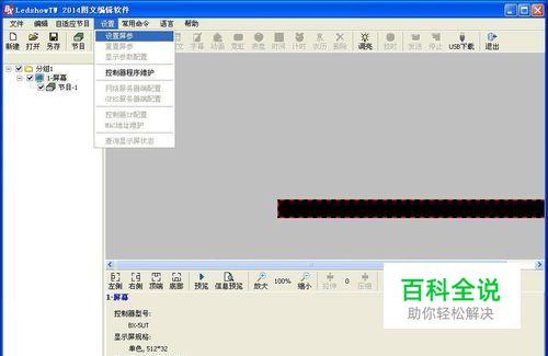 点击“LedshowTW2014”软件工具栏里的“设置”,在弹出的“设置”菜单里点击“设置屏参”