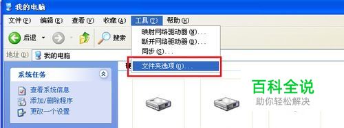 打开我的电脑,点击工具——文件夹选项。