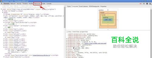 打开审查元素之后我们会首先会看到一大堆的网站代码,看不懂没关系,不用理他,直接点击resources