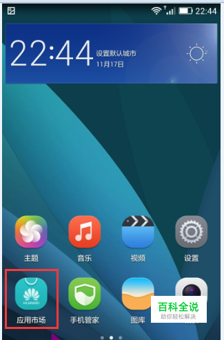 我们按home键,然后在主界面上找到【应用市场】,如图示。然后点击进入应用市场。