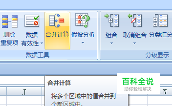 当然,还有其它合并的方式,比如进行合并计算的方式。把公式编辑在公式栏里,或者是使用合并求和的方式,就可以合并计算了。