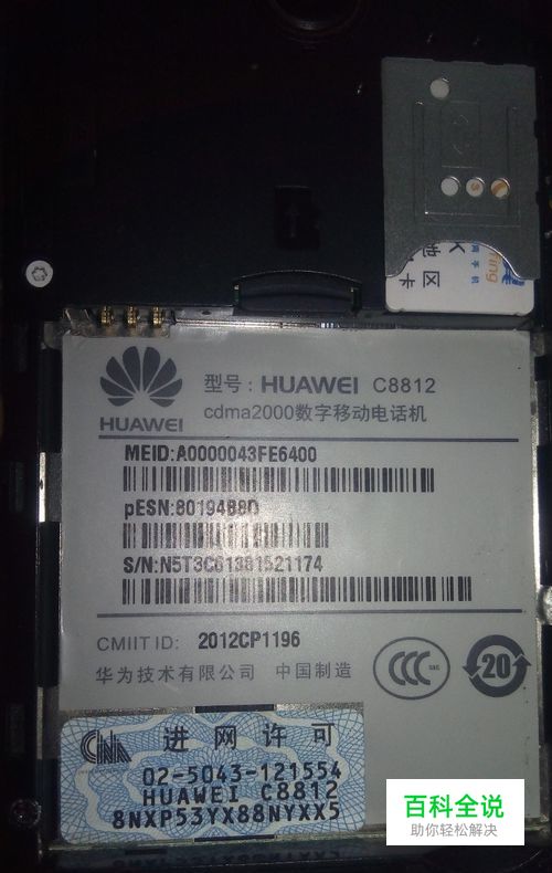 然后打开手机后盖取出电池可以看到电池下面有手机的S/N号跟IEMI/MEID号然后输入。