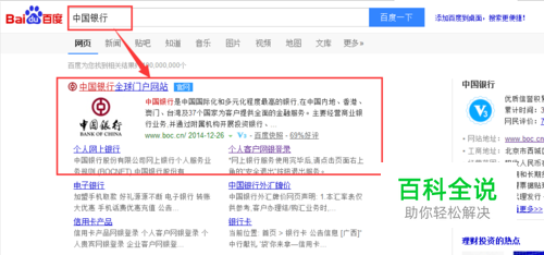 首先我们需要访问中国银行官方网站,在浏览器中输入“中国银行”进入其官网;如图:
