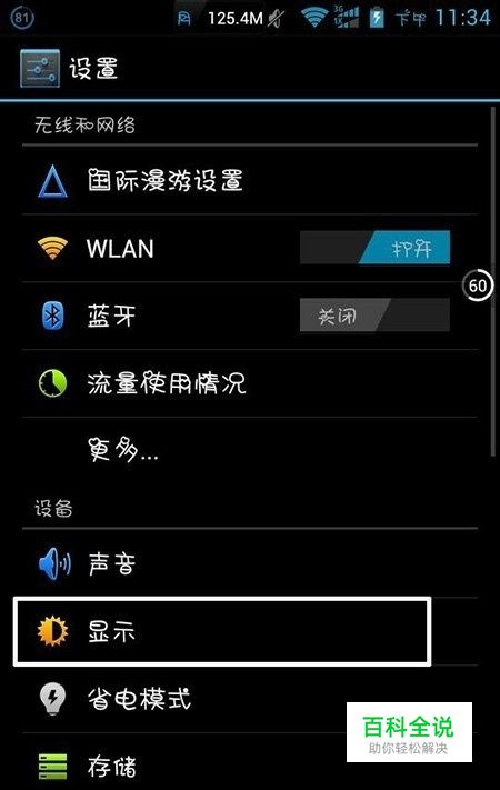 在设置功能中找到“显示”栏,进入显示设置吧。
