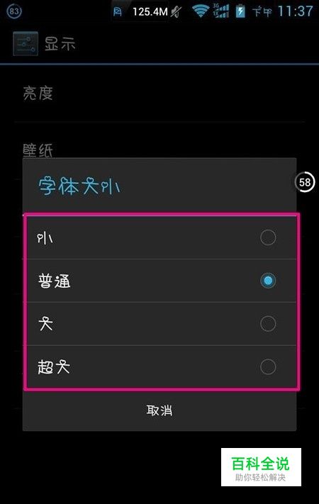 接着就是对字体大小的选择了,我们有4中选择,有小、普通、大、超大设置项。