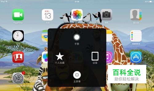ipad截图其实很方便的,按住“电源键”+“菜单键”就可以截图。在设置了桌面home键以后,又多了一种截图方法。点击桌面home键会出现如如下图的标示,再点击“设备”。