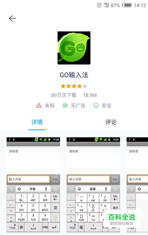 用手机连接WIFI或者电脑下载一款APP“GO输入法”并进行安装,当然不考虑流量限制的高富帅、白富美可以直接用你超高速的4G网,秒下安装也是可以的。软件图标搜出来如下图所示。