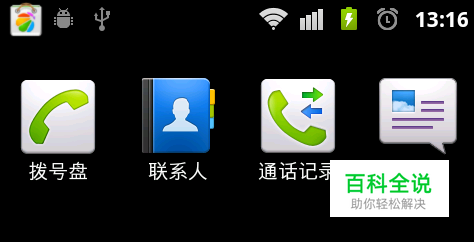 方法一:桌面→联系人→选择拨号盘,进入手机操作系统的拨号“Dialer”界面。
