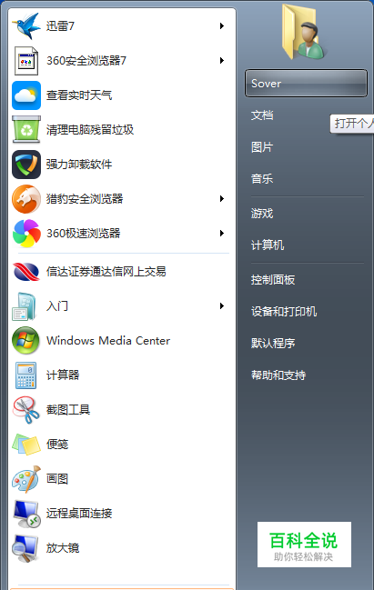 首先,我们打开个人文件夹。windows7可以在桌面和开始菜单打开。