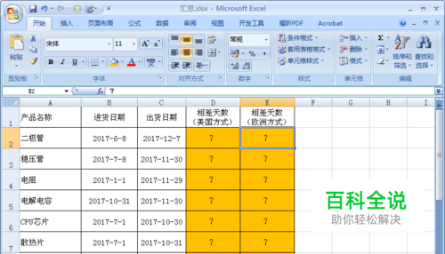 在E2单元格中输入公式:“=days360(B2,C2,true)”,true:表示采用欧洲方式。
