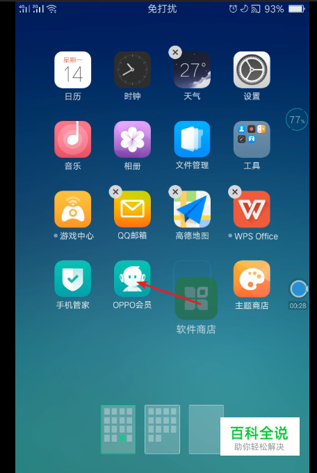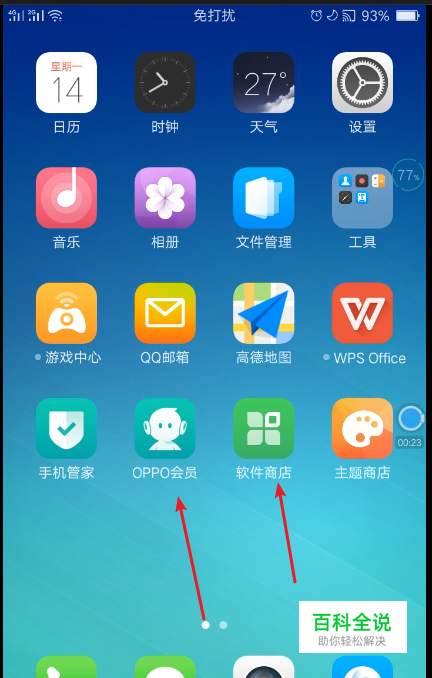 首先打开我们的手机,如图我们把“软件商店”和“oppo会员”两个应用放到一个文件夹内。