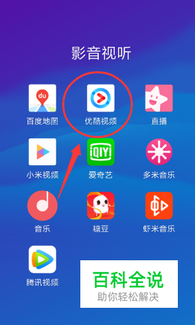 找到手机上的视频,可以通过优酷,爱奇艺,土豆等APP来观看。这里以优酷为例。