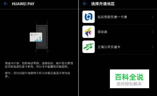 若您之前未使用过华为钱包,请根据提示将您的银行卡绑定至华为钱包。 支付开卡费用并开通公交卡:确认支付开卡费用后,等待开通公交卡(一般开卡大约需要1-3分钟,请耐心等待),直到提示开卡成功。