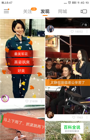打开快手短视频,在快手的发现界面中任意点击打开一个视频。
