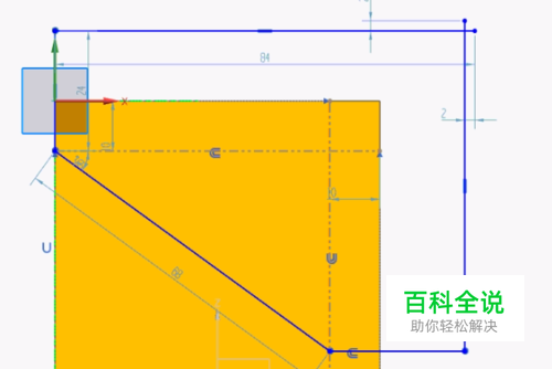 拉伸切剪零件;以拉伸实体的一端为草绘平面,然后绘制如下图所示的草图,进行图形上斜面的创建。