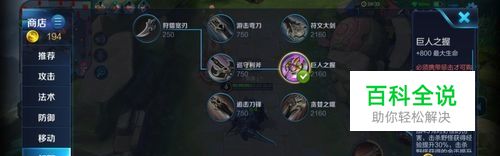 首先出打野装备“巨人之握”。这里就不推荐其它的打野刀,因为亚瑟的英雄属性本身为坦克/战士,“巨人之握”在增加英雄800生命值的同时对野怪的伤害增加至45%。(亚瑟前期的打野速度大大超出了我的预期)