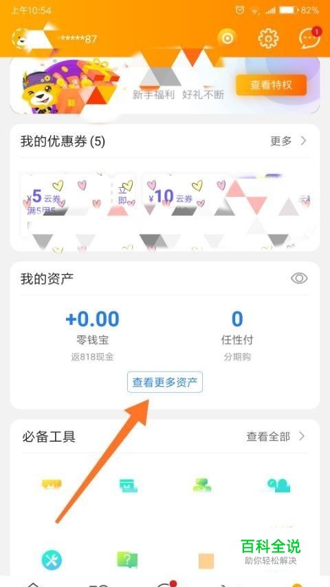 首先打开苏宁易购APP,在:我的易购首页,往下滑,找到:我的资产,点击查看更多资产,如图。