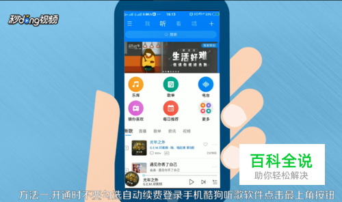 开通时不要勾选自动续费,登录手机酷狗听歌软件,点击最上角按钮。
