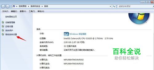 在属性页面中点击左手边的“高级系统设置”。进入高级系统页面。