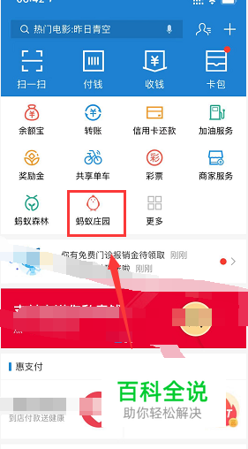 照例启动支付宝登陆账户,首页进入蚂蚁庄园,如下图所示