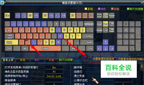 然后我们会看见键盘设置中部有个键盘设置连发,把此项前边打上对勾,然后保存就可以开启普通攻击连发了。