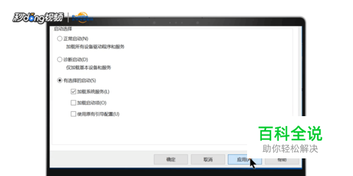 在常规选项卡中有选中有选择的启动,勾选加载系统服务,取消加载启动项,点击应用。