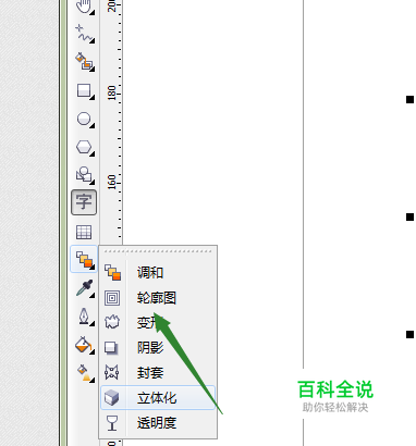 三、在工具栏上找到轮廓图工具,在字体做一个轮廓