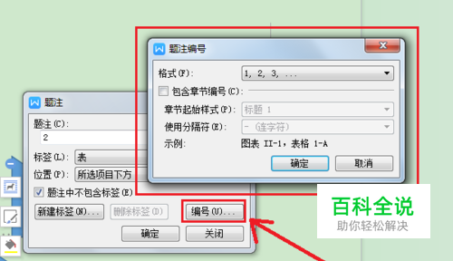 选中包含章节编号会包含章节编号。其中, 1)起始章节样式设置的是从哪个章节开始包含章节编号,即包含从哪一级标题到最后一级标题的编号; 2)连字符指的是章节编号和图表编号之间用哪一种类型的分隔符。