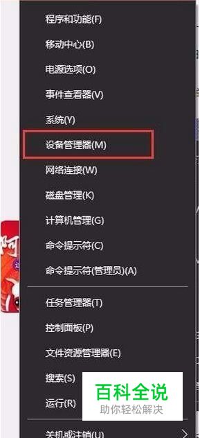 同样的,先右键屏幕左下角的开始菜单,打开“设备管理器”
