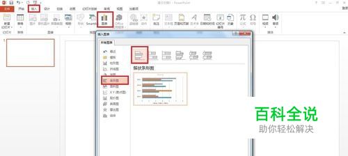 首先打开PPT2013——点击插入——图表——选择条形图——选择条形图样式,有簇状、堆积、百分比等条形图(相应的还有三维的条形图)——点击确定,就可以打开条形图了。