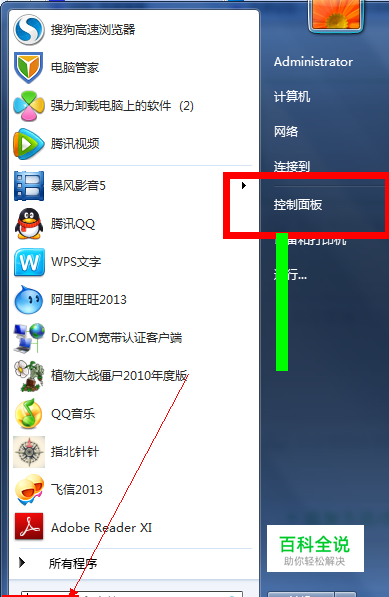 执行“开始”菜单命令,在打开的窗口里面寻找“控制面板”