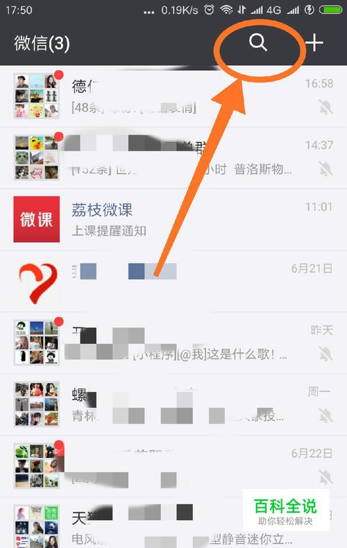 首先先登录你的微信账号,然后我们点击『信息』一栏右上角的搜索图标;