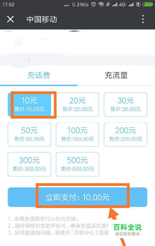 输入你要充值的手机电话号码,在充话费一栏点击充值金额,然后点击『立即支付:✘✘.00元』