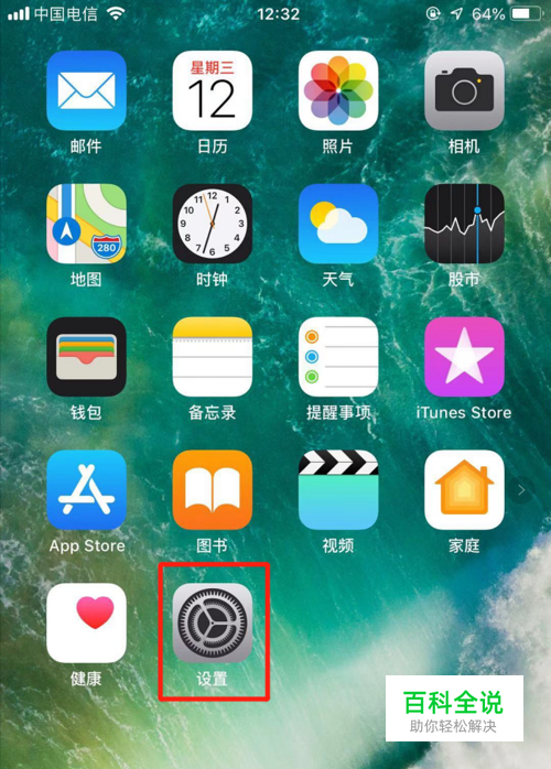 打开苹果手机,在桌面上找到系统自带的【设置】APP,如图所示。点击【设置】,在设置主页下找到并点击【控制中心】。