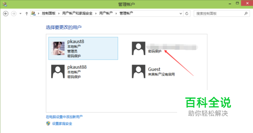 微软账户用户成功删除后,在管理帐户窗口里就看不到了,如下图所示。