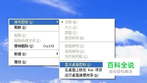 右击桌面空白部分,然后选择”排列图标“,勾选”显示桌面图标"。不行的话进行下一步。