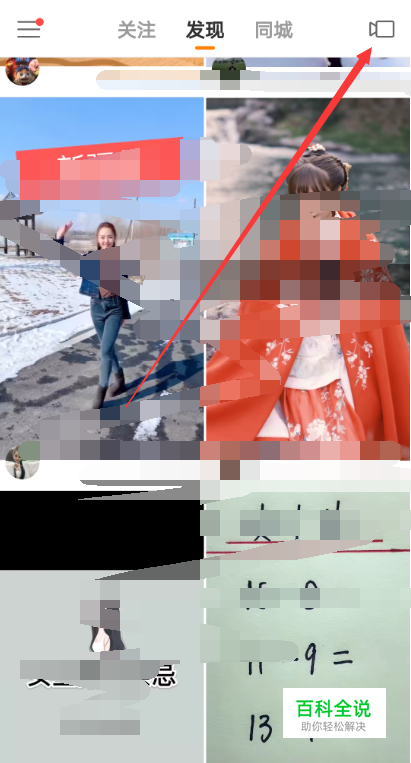 打开快手APP后,直接点击右上角的【拍摄】图标,如下图所示。