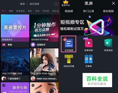 制作前先准备好视频素材,美册首页,点击框选的红色按钮,进入功能页面,我们先要用到的是短视频专区的文字视频功能。