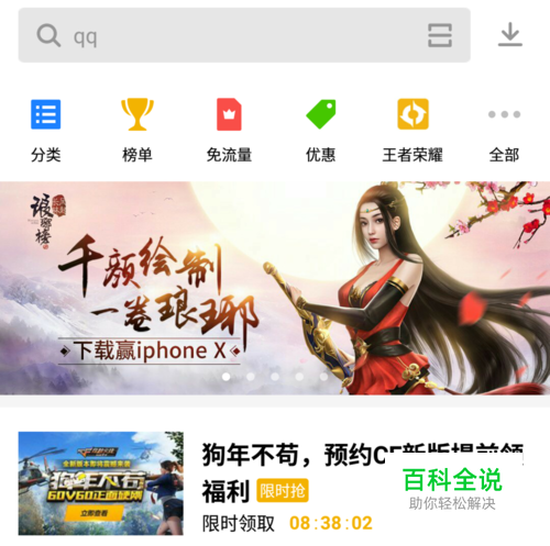 接着打开应用宝,进入首页,在最上面的菜单里找到“优惠”点进去。