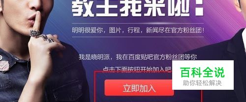 这里,我以加入黄晓明官方粉丝团吧为例向大家讲解,仅仅是范例而已,不是为了打广告。好了,点击贴吧首页的“ 立即加入”。