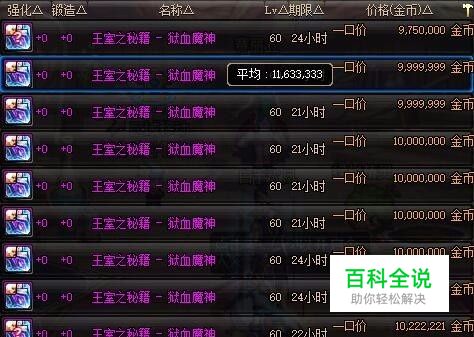 60级粉左槽王室之秘籍系列buff装备,有些价格非常的高。这里我们一起看一下其中几个。红眼的白板王室之秘籍-狱血魔神,跨六1000W金币左右。
