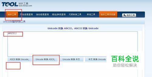 第二你要找到【Unicode 转换 ASCII】工具,有在线工具,比如【站长工具】