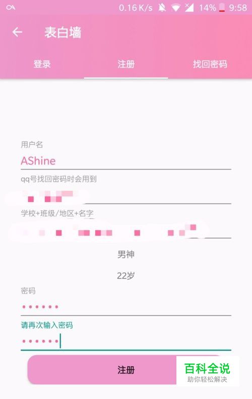 答案当然是肯定的,有!去手机应用市场搜索下载「表白墙」这是一款表白的神器,使用首先需要注册,需要设置用户名,填入 QQ 号码,还有学校、班级、地区和你的名字,再设置好登录密码。就可以提交了。