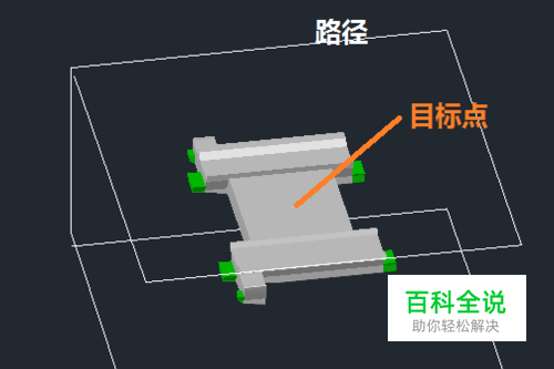 绘制摄像机路径与目标点 1. 用线段在模型周围三维空间中绘制摄像机的路径,并将这些线段连成多段线; 2. 在模型中找一个目标点(中心或表面角点)并画一个点,这个目标点将是摄像机镜头对准的焦点。 要考虑清楚哪些位置能将目标最好的表现出来