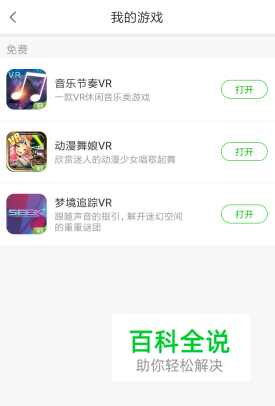 在这里我们就可以知道我们目前下载了哪些VR游戏。点击【打开】就可以直接运行该app进行游戏哦~