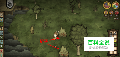 在工具台合成一把铲子,铁的金的都可以。 找到浆果丛用铲子挖掘浆果根。饥荒游戏中的浆果是随机出现的。青草、密林、橡树林都是最容易出浆果的地方。