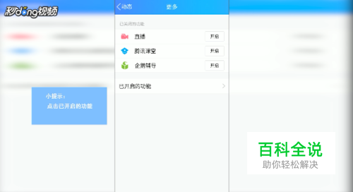 在更多页面中,点击已开启的功能,找到好友微视,点击好友微视。