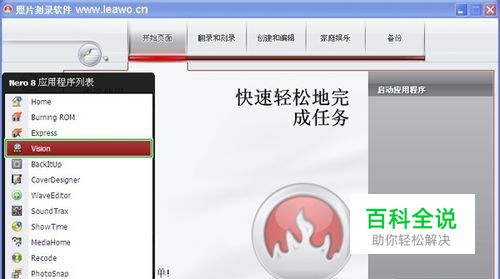 以照片刻录到DVD光盘为例。打开照片刻录软件,如下图,选择vision功能。