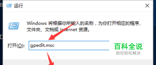 2、在打开的运行命令对话框中输入“gpedit.msc”命令,然后再点击“确定”按钮。如图所示;