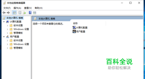 3、点击确定按钮后,这个时候会打开“本地组策略编辑器”对话窗口,如图所示;